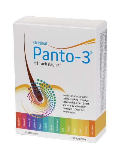 Panto-3 är ett kosttillskott med mineraler, vitaminer, örter och aminosyror.