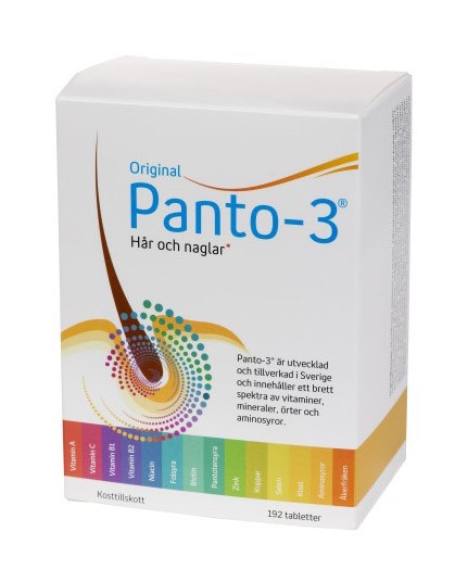 Panto-3 är ett kosttillskott med mineraler, vitaminer, örter och aminosyror.