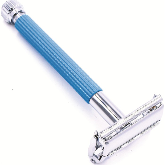 Parker Shaving 29L Blue Ladies Textured Long Handle Butterfly Open Safety Razor
