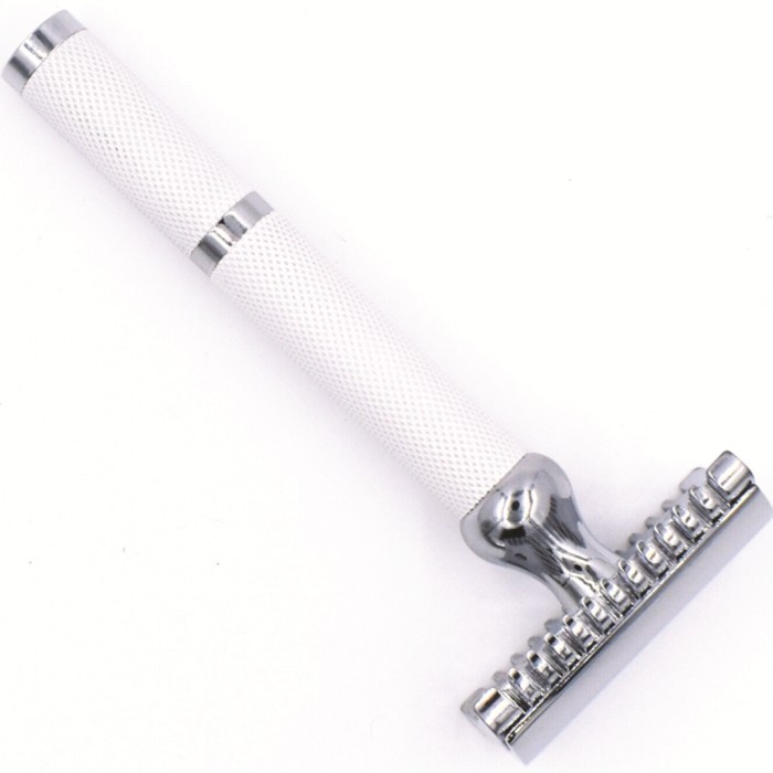 Parker Shaving 70C Unisex White & Chrome Handle Open Comb Head 3 Piece Safety Razor