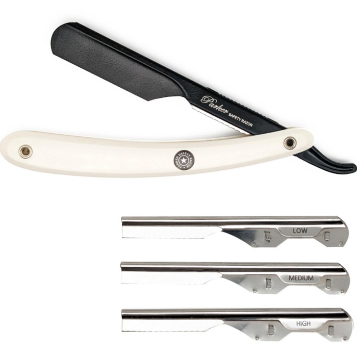 Parker Shaving barberar-rakhyvlar används i frisersalonger och raksalonger över hela världen. PTAWK Adjustable Push w. 3 Blade Option White Handle Barber/Straight Razor är en rakkniv med snygg design, där man enkelt kan byta bladet. För rakningar med ett verktyg som efterliknar en traditionell rakkniv, men med ett fast blad.