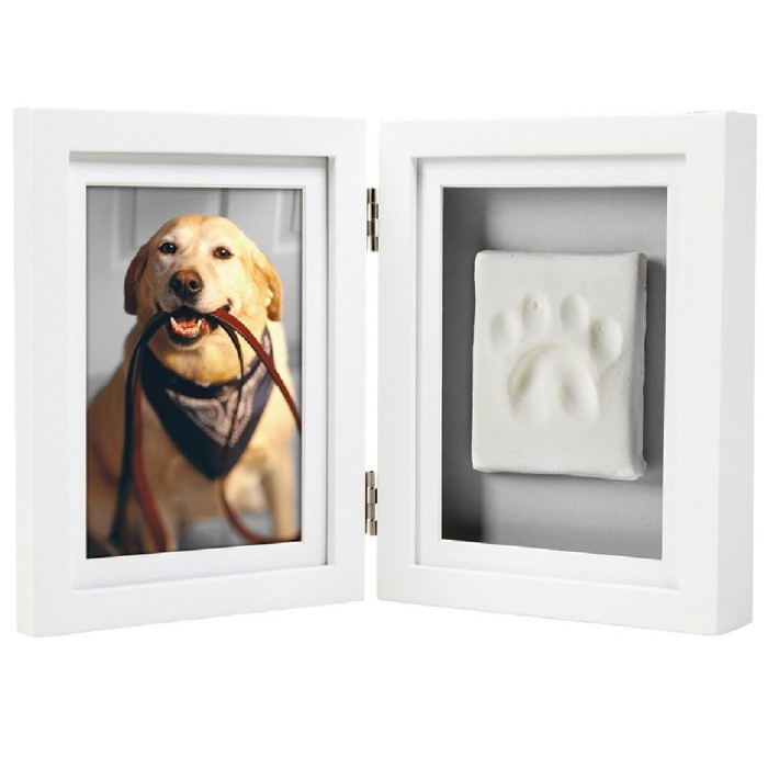 Med Pearheads Tassavtryck & Ram kan du göra ett minnes-avtryck av din hund eller katts tass i lera. Förutom leran innehåller förpackningen en linjal och dubbelsidig tejp så att du kan skära ut avtrycket och montera det i ramen. Leran är färdigblandad/klar att användas. Låt avtrycket/leran torka i ett par dagar innan du fäster det med tejpen på bakgrundskortet.