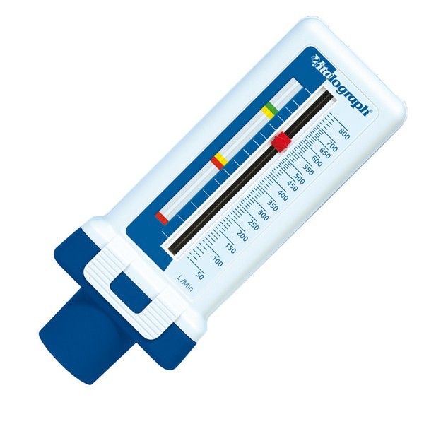 Håll koll på din astma med en PEF-mätare. Enkel övervakning av ditt toppflöde och färgkodad mätning med 3 zoner i olika färger. PEF är engelska för Peak Expiratory Flow, vilket betyder topputandningsflöde. Det är ett mått på det högsta luftflödet man klarar att blåsa ut. Vitalopgraph PEF-mätare standard för vuxna har en färgskala som justeras efter behov av specialist inom sjukvården.