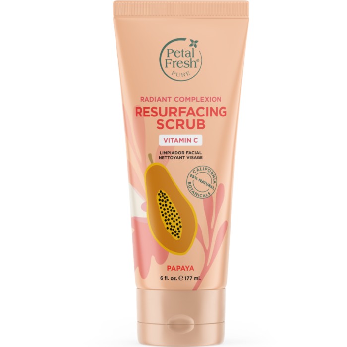 Petal Fresh® Petal Fresh Pure Resurfacing Scrub är formulerad med ett uppljusande komplex av C-vitamin och papayaextrakt, medan naturliga alfahydroxisyror arbetar i kombination med aprikosskrubb för djup exfoliering. Huden kommer att kännas ren, fräsch och strålande.