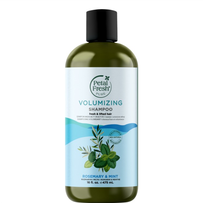 Petal Fresh Pure Volumizing Shampoo Rosemary & Mint är ett hårschampo som innehåller certifierat ekologisk rosmarin och mynta. Schampot rengör håret försiktigt samtidigt som det ger volym från rötter till toppar för att ge håret en långvarig fyllighet.