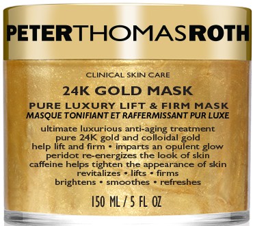Peter Thomas Roth 24K Gold Mask är en lyxig antiage-ansiktsmask med en rik konsistens som innehåller rent 24K guld samt kolloidalt guld. Peter Thomas Roth guldmask har en "plumpande" effekt, ger huden ett lyft och en fin lyster. Gör att huden stramas upp och blir fastare samtidigt som huden får en intensiv återfuktning. 24K Gold Mask innehåller peridot, en ädelsten med magnesium, för att ge energi till huden, reducera ålderstecken och förbättra hudens spänst.
