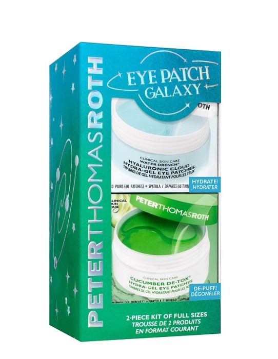 Eye Patch Galaxy 2-Piece Kit från Peter Thomas Roth är ett lyxigt set som innehåller produkterna Water Drench Eye Patches och Cucumber Hydra Gel Eye Patches i ordinarie storlekar.