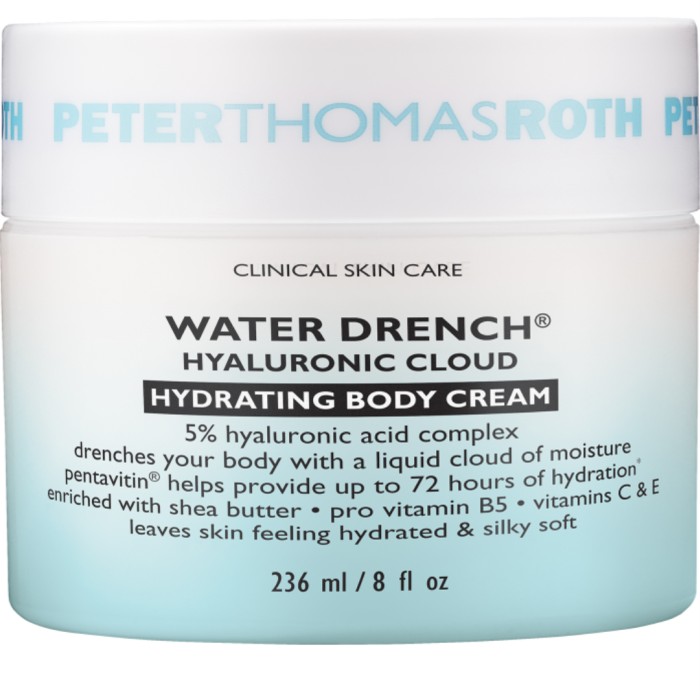 Water Drench Hyaluronic Cloud Hydrating Body Cream från Peter Thomas Roth är en hudkräm som ger kroppen en fuktboost. Krämen är djupt återfuktande men känns nästan lika lätt och fluffig som ett moln (därav namnet).