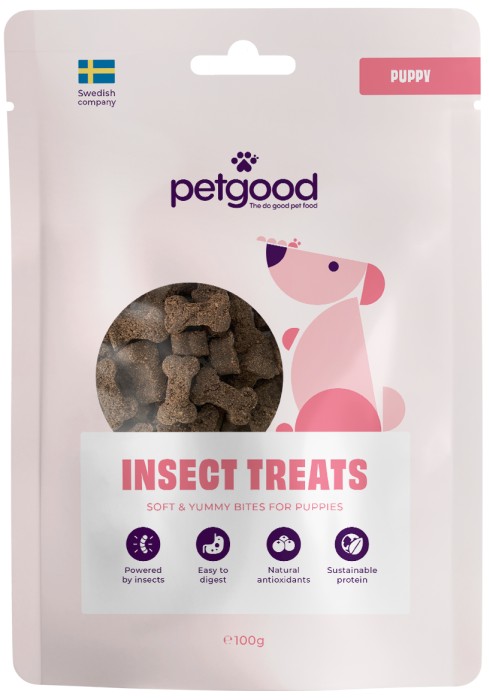 Petgood Puppy Treats är ett valpgodis för träning och lek. Detta hundgodis är lättsmält och därmed mer skonsamt för hundens mage. Innehåller naturliga antioxidanter från tranbär för att stötta valpens immunförsvar. Godisbitarna är små och mjuka för att passa även de minsta munnarna. Insektbaserat och rikt på protein och hälsosamma fettsyror.