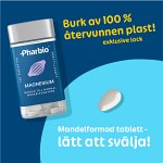 Pharbio Magnesium är ett kosttillskott som innehåller 250 mg magnesium per tablett. Magnesium bidrar till nervsystemets normala funktion och till normal muskelfunktion.