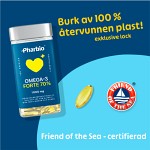 Pharbio Omega-3 Forte är ett kosttillskott med högkoncentrerad fiskolja. Med en kapsel får du i dig det rekommenderade dagliga intaget av omega-3-fettsyrorna EPA och DHA (250 mg).