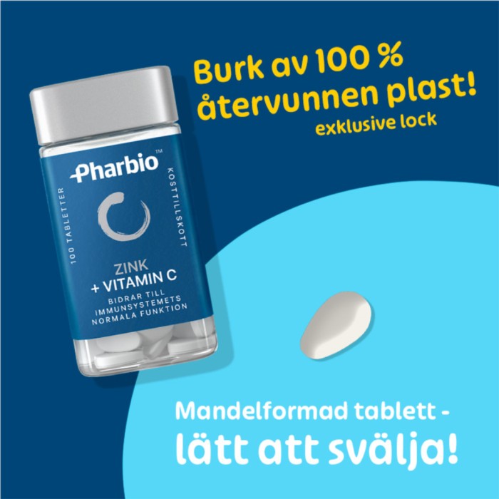 Pharbio Zink + Vitamin C är ett kosttillskott med zink och C-vitamin. Zink och C-vitamin bidrar till att skydda cellerna mot oxidativ stress och till immunsystemets normala funktion. Zink bidrar till att bibehålla en normal synförmåga, normalt hår och naglar samt normal hud.