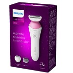 Philips Lady Shaver Series 6000 är designad för att raka skonsamt och bekvämt även på känsliga områden av kroppen. Rundade trimmertoppar framför och bakom skärbladet gör att rakapparaten glider smidigt över huden. Det flytande skärbladet glider naturligt över kroppens kurvor och konturer och bibehåller nära kontakt med din hud för att ge en jämn rakning. Lady Shaver Series 6000 är vattentät så du kan använda den i duschen om du vill. Den ger upp till 40 minuters sladdlös användning på en laddning.