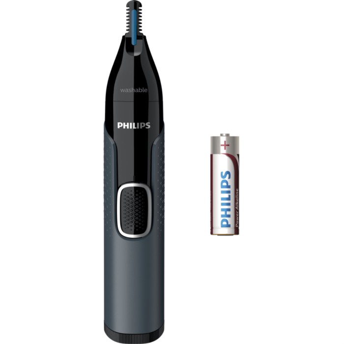 Philips näshårstrimmer har ett texturerat handtag för att ge ett bra grepp, även när det är blött. Helt tvättbar för enkel rengöring.