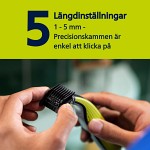 Med kroppskammen kan du enkelt och säkert trimma allt kroppshår, till exempel på bröstet eller magen, i alla riktningar. Nu är det dessutom enklare än någonsin att ta hand om oönskat hår i intimområdet eller armhålorna tack vare Skin Protector.