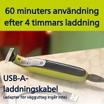 Det laddningsbara litiumjonbatteriet ger upp till 60 minuters oavbruten rakning efter 4 timmes laddning. En USB-A laddningskabel medföljer (nätadapter medföljer inte).