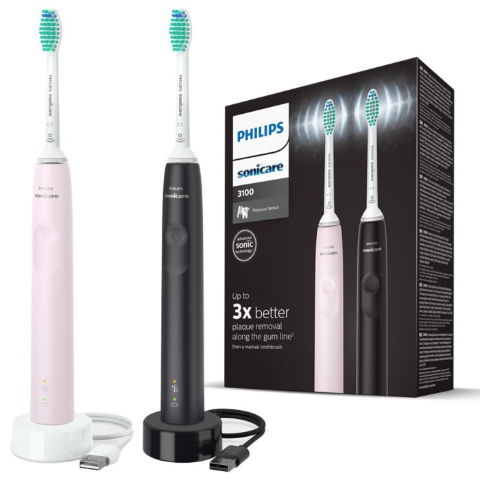 Philips Sonicare eltandborste 3100 Series 2-pack Ljusrosa & Svart