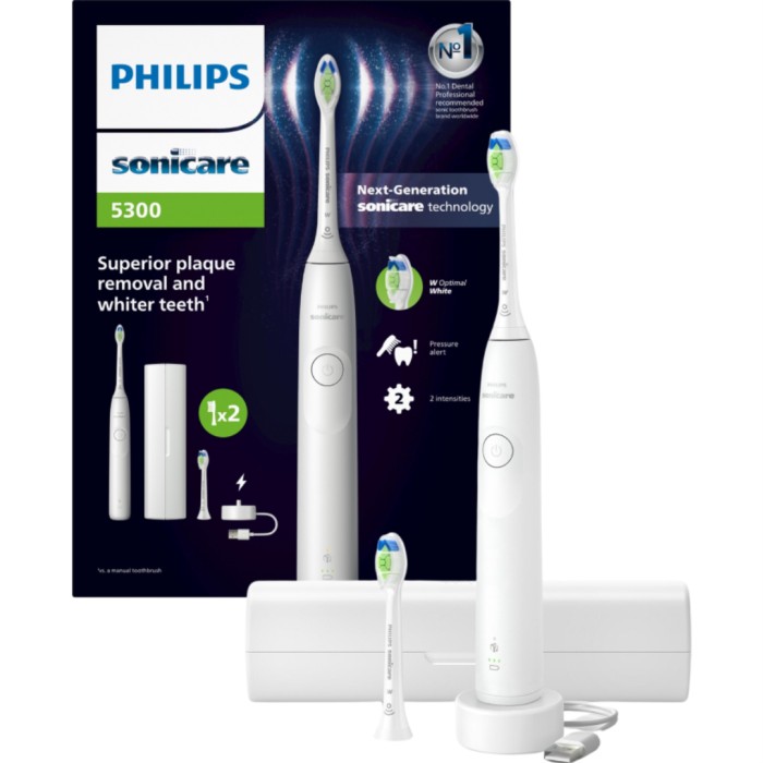 Philips Sonicare 5300 är nästa generations laddningsbara tandborste, designad för överlägsen plackborttagning och vitare tänder. Eltandborsten är utrustad med unik Sonicare-teknik som skapar mikrobubblor som underlättar rengöringen mellan tänderna. Det ovala borsthuvudet rengör flera tänder åt gången. Det gör att du kan borsta på samma sätt som med en manuell tandborste, bara bättre och med mindre ansträngning.