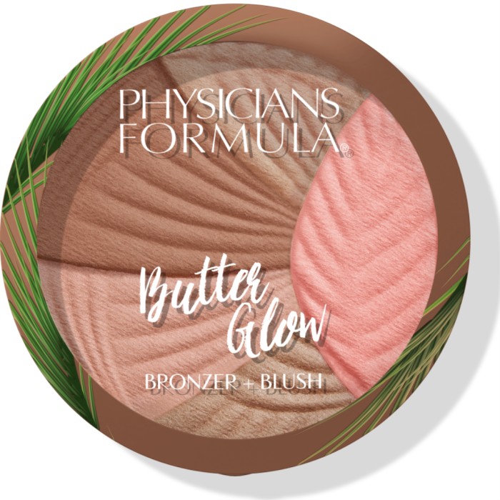 Butter Glow Bronzer + Blush Healthy Glow är en talkfri bronzer/rouge som är berikad med Physicians Formulas speciella smörkomplex, som ger huden strålande lyster. Butter Glow Bronzer + Blush har en mycket krämig och mjuk textur och är berikad med lystergivande mineraler för att ge ett lätt glow. Physicians Formulas bronzer/rouge innehåller en blandning av murumurusmör, cupuaçusmör och tucumasmör från Amazonas, och är fylld med essentiella fettsyror och provitaminer som mjukar upp, vårdar och återfuktar huden, och gör huden silkeslen.
