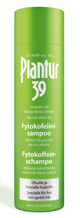 Plantur 39 är ett schampo med fytokoffein som främjar hårets naturliga tillväxt. Schampot kan bidra till att förebygga för tidig uttunning av håret efter klimakteriet.