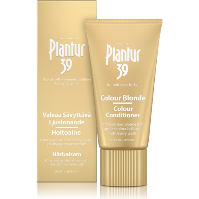 Plantur 39 Colour Blonde Conditioner är ett ljustonande hårbalsam som ger en varm blond färg och ökad färgglans. Gör håret enkelt att kamma och förebygger håravfall i klimakteriet.