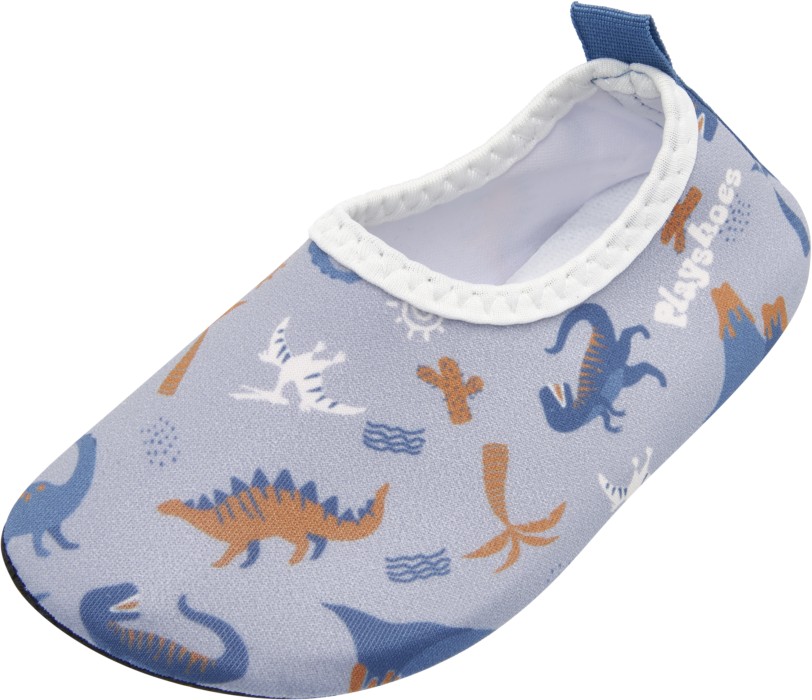 Playshoes badsko Dino Allover är en snabbtorkande badsko med halkfri TPR-sula. Skorna skyddar barnets fötter från het sand och vassa stenar. Skorna har instegshjälp för enkel på- och avtagning. Passar både på stranden och vid poolen, och kan även att använda som tofflor. Playshoes Dino Allover har en enkel stängning med kardborrefäste, vilket gör att du snabbt kan ta av och på dem och det ger även ett bra grepp i skon.