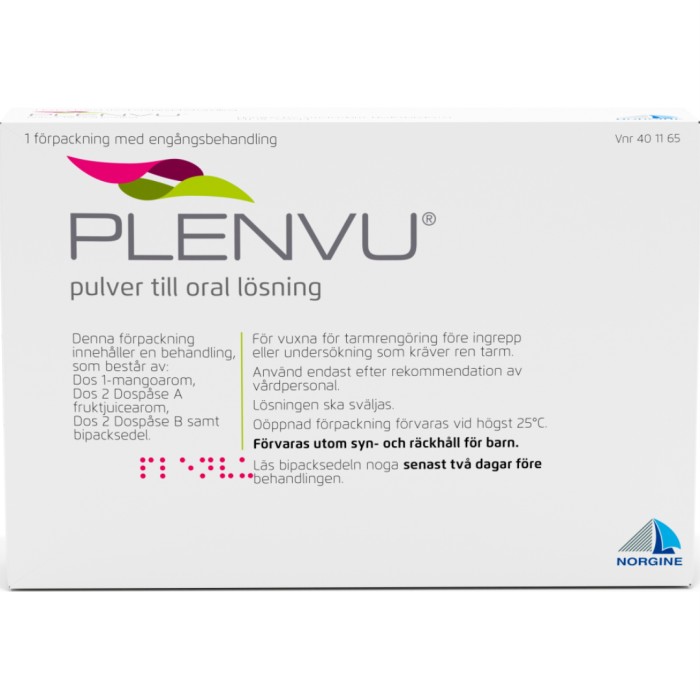 Plenvu är för vuxna för tarmrengöring före ingrepp eller undersökning som kräver ren tarm. Plenvu tömmer tarmen genom att framkalla diarré. Använd endast efter rekommendation av vårdpersonal.