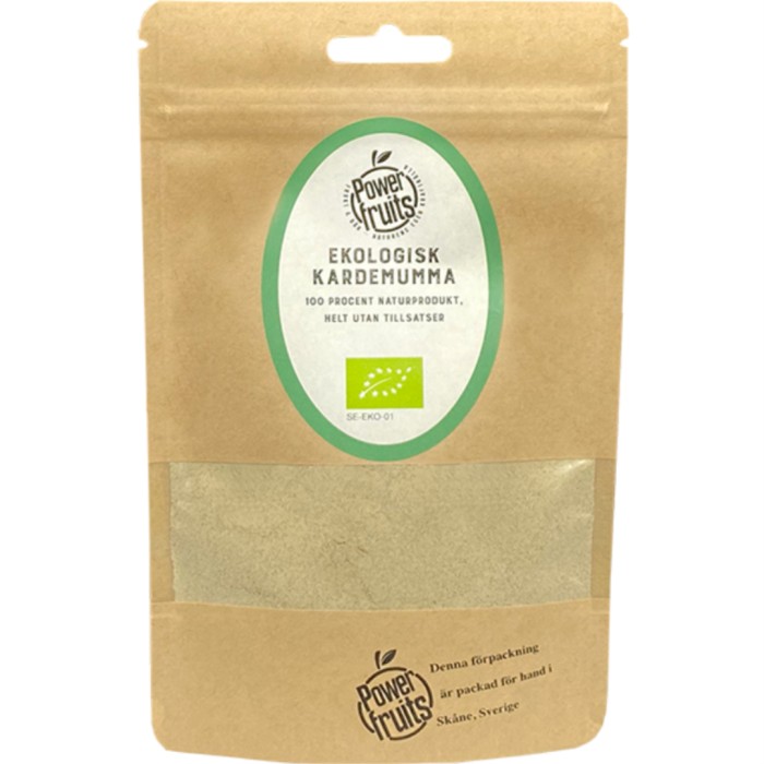 Ekologisk kardemumma från Powerfruits. Kardemumma ingår i ingefärssläktet och är världens tredje dyraste krydda, efter saffran och vanilj. Kardemumma kan användas i matlagning och bakning. I många delar av världen används den också för att smaksätta kaffe och te.