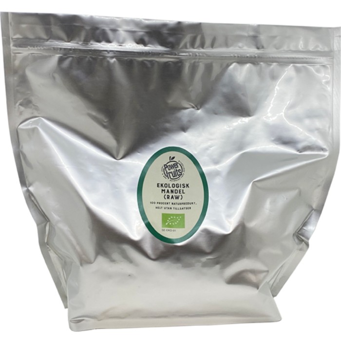 Ekologiska mandlar från Powerfruits i stor påse med 2 kg. Ät mandlarna som en naturlig snack direkt ur påsen, eller använd dem i bakning och matlagning.