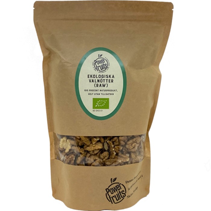 Powerfruits ekologiska valnötter är rika på protein, nyttiga fetter och omega-3 i form av alfalinolensyra (ALA). Ät dem som en naturlig snack direkt ur påsen, eller använd i müsli, fruktsallad, till bakning/desserter eller till matlagning i t ex grytor eller hacka och strö över salladen.