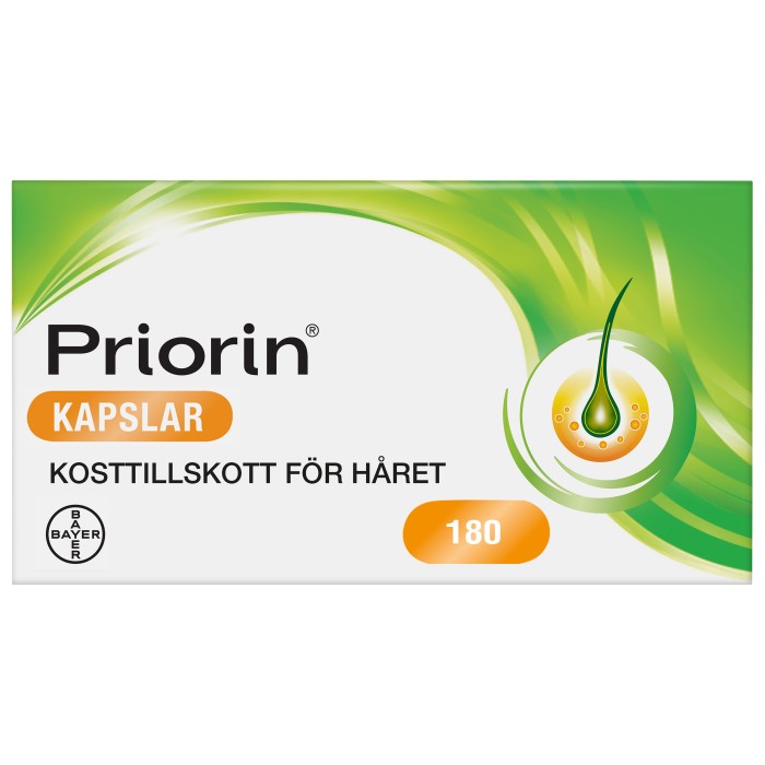 Priorin kapslar är ett kosttillskott med biotin som bidrar till att bevara ett normalt hår. Priorin innehåller även en kombination av hirsextrakt, vitamin B5 (pantotensyra) och aminosyran L-cystin.
