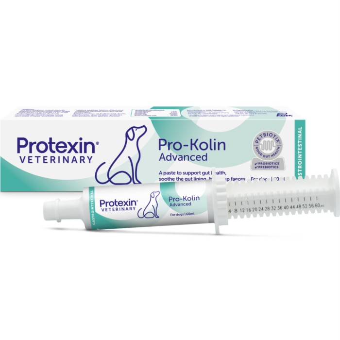 Pro-Kolin Advanced användes vid akut ospecifik diarré hos hundar. Innehåller mikro-inkapslade probiotiska bakterier som koloniserar tarmen, samt kaolin och pektin som binder toxiner och normaliserar förhållanden i tarmen.