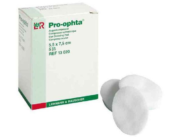 Pro-ophta Ögonkompress är en oval kompress med kontaktskikt av gasväv på båda sidor. För vård av öga efter operativa ingrepp eller vid yttre ögonskador.