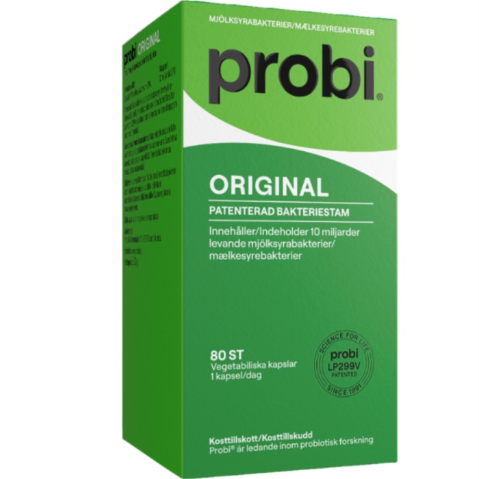 Probi Original är ett kosttillskott i kapselform med mjölksyrabakterien Lactobacillus plantarum 299v (LP299V®). Den patenterade och väldokumenterade mjölksyrabakterien har genomgått ett fyrtiotal kliniska studier. Den har kliniskt visat förmåga att överleva matsmältningspassagen och stanna kvar i tarmen.