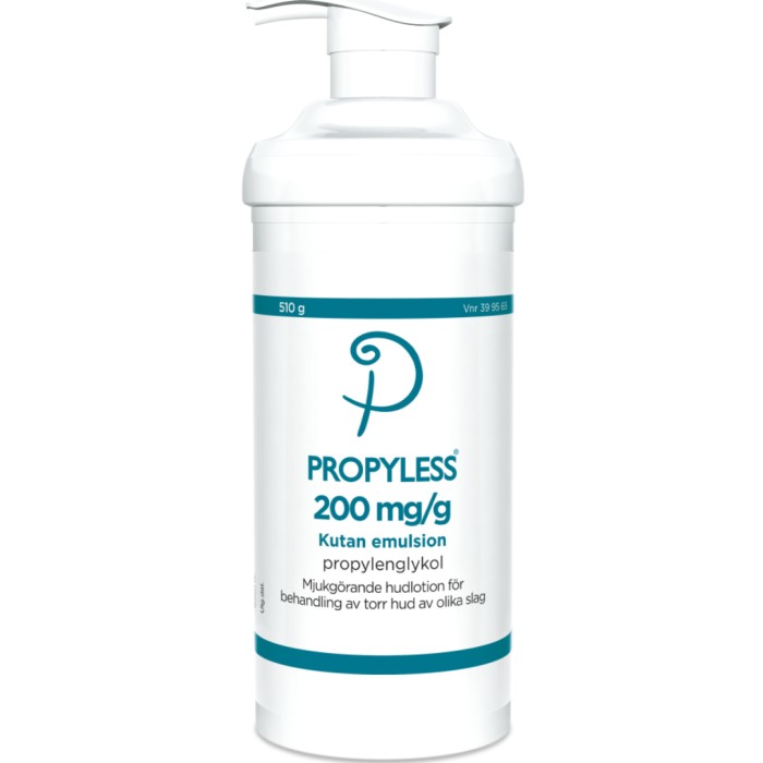 Propyless är en mjukgörande emulsion med vattenbindande egenskaper och viss antimikrobiell effekt mot vissa svampar och bakterier. Propyless används för att behandla torr hud av olika slag.