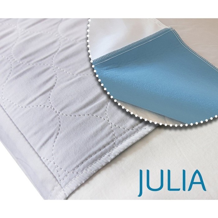 ProSense Julia andas men är samtidigt helt vätsketätt. Lakansskyddet är färgkodat för att man enkelt ska kunna avgöra vilken sida som ska vara uppåt respektive nedåt, undersidan är blå. Skyddet innehåller inte heller PVC eller latex.