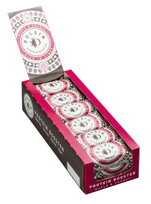 Pulsin Maple Peanut Protein Booster är en proteinbar med jordnötter, ärtprotein och kallpressat kakaosmör. Baren kan ätas som mellanmål eller i samband med träning. 13 g protein per bar. Vegansk och glutenfri.