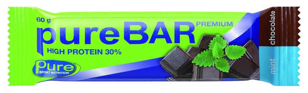 Pure Bar Mint Chocolate är en proteinrik bar att ta före, under eller efter träning. Går även bra att ta som ett mellanmål. En Pure Bar innehåller ca 30% protein och har ett överdrag av äkta mörk choklad.