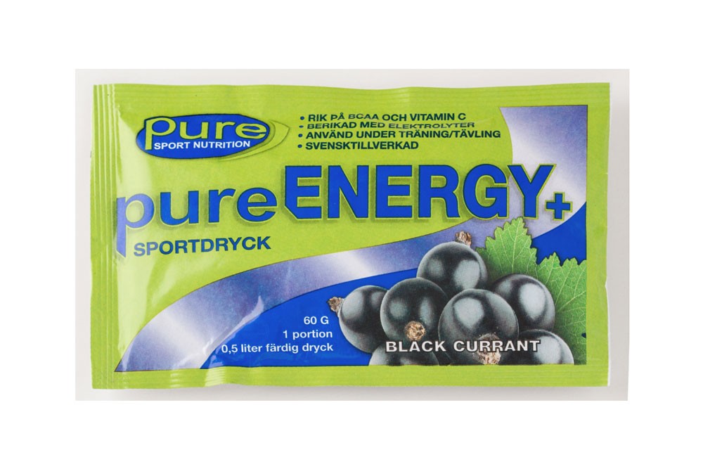 Pure Energy+ Blackcurrant är en sportdryck som ger dig kolhydrater i form av dextros, palationose och fruktos. Palationose ger en lägre höjning av blodsockret.