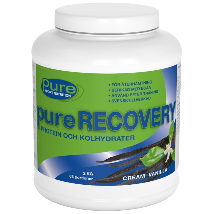 Pure Recovery är ett proteinpulver, en återhämtningsdryck att ta efter träning. Pure Recovery innehåller en blandning av vassleprotein, maltodextrin och Palatinose™. Protein bidrar till att öka muskelmassan i samband med träning. Berikad med BCAA.