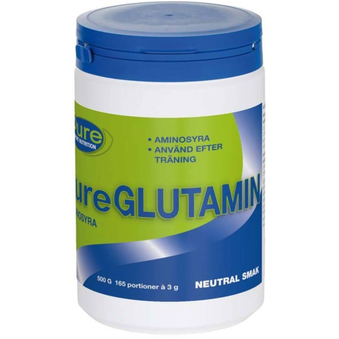 Pure Glutamin är ett pulver som kan användas efter träning. Glutamin är en icke-essentiell aminosyra.