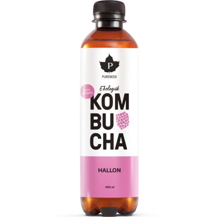 Kombucha är en lätt porlande och uppfriskande dryck som bryggs på fermenterat grönt te. I Asien är kombucha en traditionell dryck med tusenårig historia, och i dag har den blivit populär världen över. Pureness Kombucha baseras på endast fyra råvaror av högsta kvalitet: filtrerat vatten, ekologiskt grönt te, ekologiskt rörsocker och en levande Kombucha-kultur. Socker spelar en stor roll i jäsningsprocessen och används, inte för att söta drycken, utan för att påskynda utvecklingen av mjölksyrabakteriestammar. En färdig kombuchasats innehåller dock ca 6 g socker per 100 ml dryck, dvs mindre än i traditionella läskedrycker. Pureness Kombucha finns i flera smaker: Cola, Ingefära & Citron, Persika samt Hallon.