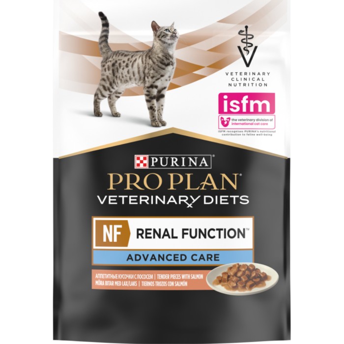 Purina Pro Plan Veterinary Diets NF Renal Function Advanced Care är ett komplett våtfoder till katter som stödjer njurfunktionen i avancerade stadier av kronisk njursvikt hos vuxna katter.