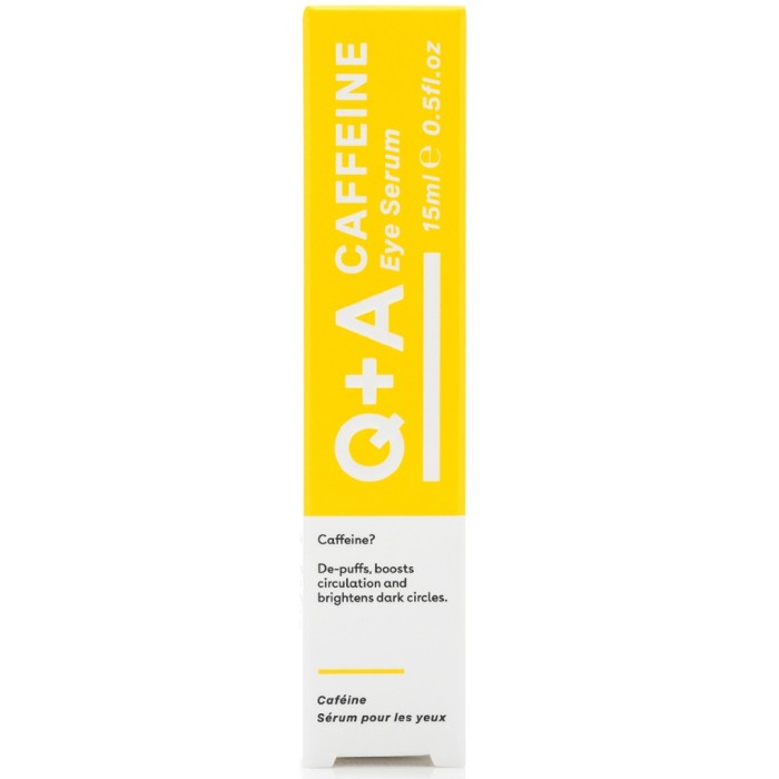 Q+A Caffeine Eye Serum är ett ögonserum framtaget för att minska svullnad och påsar under ögonen. Serumet appliceras med en roller som känns svalkande och masserar vid applicering. Innehåller 99 % naturliga ingredienser. Doftfritt.