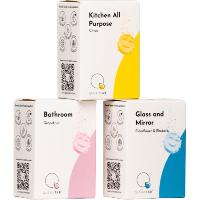 Qleantab refill-tabletter för kök, badrum och glasrengöring.