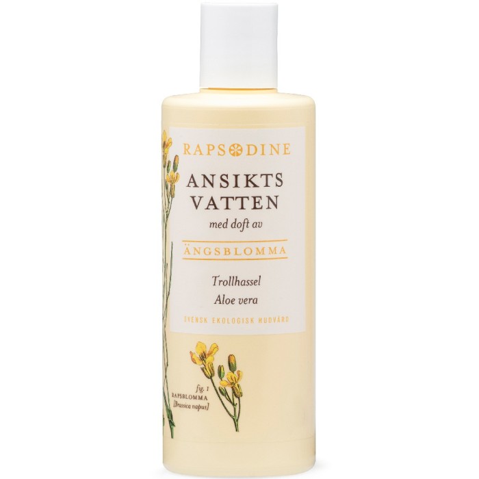 Rapsodine ansiktsvatten är ett milt och friskt ansiktsvatten som tar bort resterna av smuts och eventuell make up efter rengöring. Lugnar och stimulerar huden och ger en uppfriskande känsla.