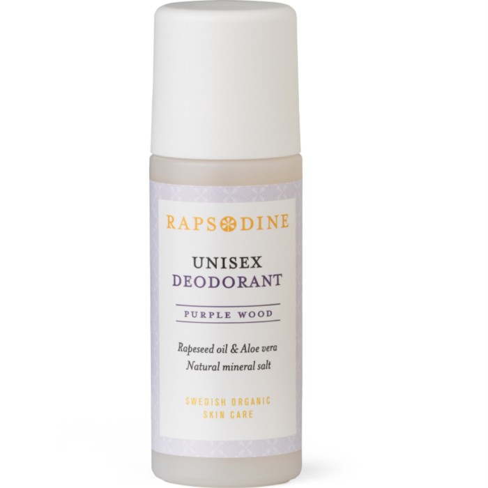 Rapsodine Deodorant är en unisex deodorant med en bas av aloe vera och naturligt mineralsalt. Aloe vera återfuktar och lugnar huden och mineralsaltet motverkar dålig lukt samt minskar svettproduktion. Deodoranten innehåller även mjukgörande rapsolja.