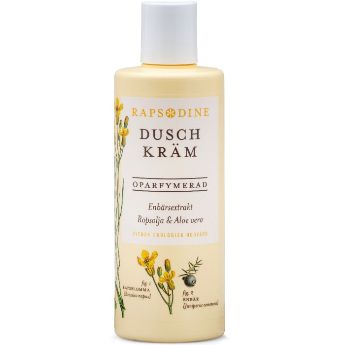 Rapsodine Duschkräm oparfymerad är en behaglig och mild duschkräm för din dagliga hygien. Duschkrämen ger ett mjukt lödder och innehåller svensk ekologisk rapsolja som bland annat bidrar till att återfukta huden.