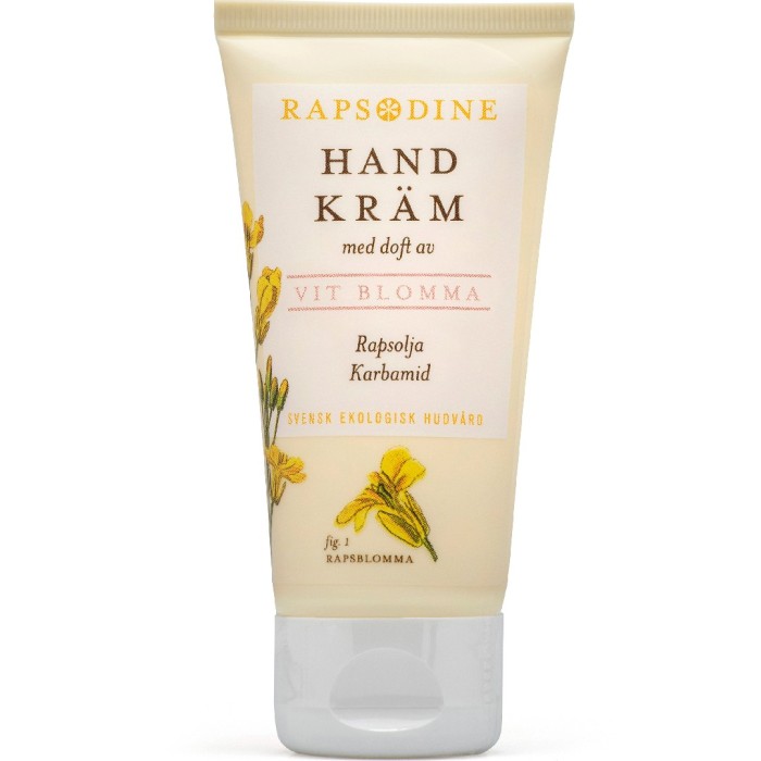 Rapsodine handkräm är baserad på ekologisk rapsolja som har unika mjukgörande och återfuktande egenskaper. Krämen absorberas lätt av huden där den mjukgör, återfuktar och skyddar. Innehåller även karbamid och har en lång fuktighetsbevarande verkan.