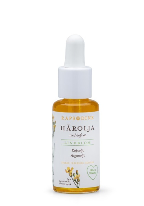 Rapsodines Hårolja skyddar och återfuktar håret samtidigt som den stärker och ger håret lyster. Håroljan är baserad på rapsolja och arganolja och kan användas i både fuktigt och torrt hår.